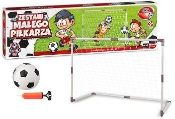W zestawie: elementy do złożenia bramki 20 szt., siatka, piłka śr. 16 cm., pompka. Pozostałe informacje: wym. bramki po rozłożeniu: 110 x 80 x 42 cm., wym. opakowania: 59 x 17,5 x 4 cm., 3+