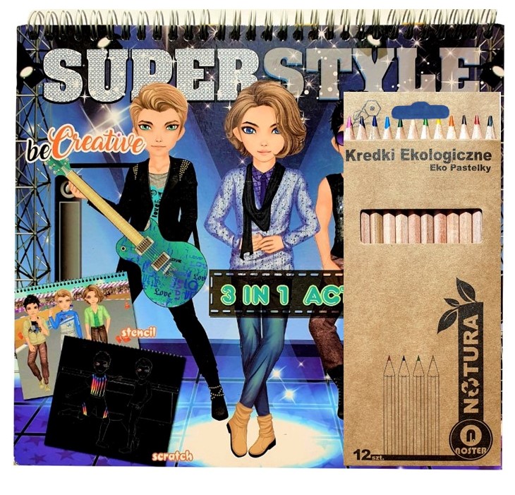 Opakowanie Zestaw malowanka kreatywna Super style z neonowymi zdrapywankami + 12 kredek