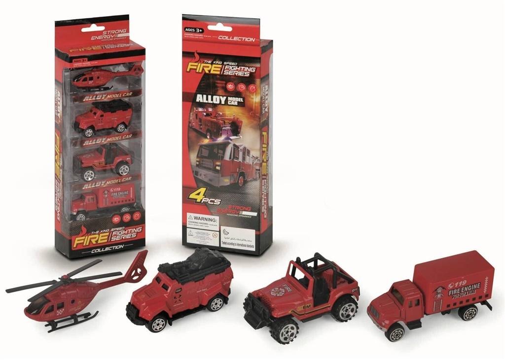 Zestaw autek o charakterze straży pożarnej, w każdym opakowaniu 4szt różnych modeli aut z serii. Seria FIRE to autka dla wszystkich fanów strażackich samochodów. Zabawka posiada certyfikat CE. Zabawka przeznaczona dla dzieci powyżej 3go roku życia.Towar wysyłany losowo.