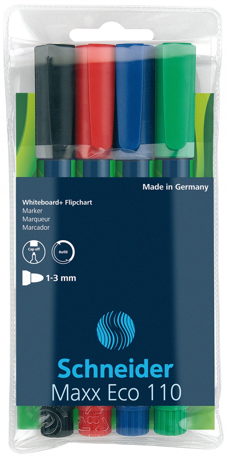 Opakowanie Zestaw markerów do tablic Schneider Maxx Eco 110 miks kolorów 4 sztuki