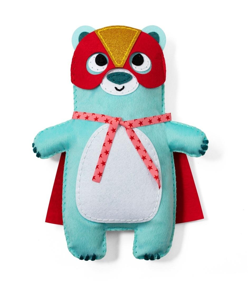 Superbohater w przebraniu - w zestawie elementy do uszycia zdejmowanego ubranka oraz maski i peleryny.
