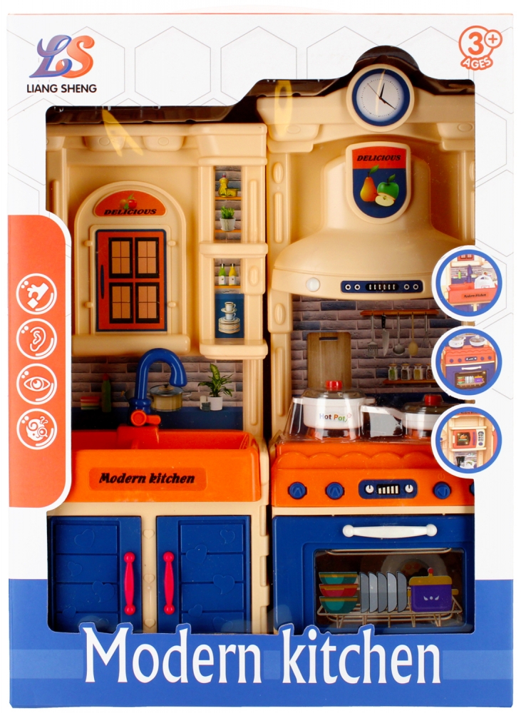 Meble posiadają funkcje dźwiękowe oraz świetlne, kuchenka po włączeniu wydaje efekty prawdziwego gotowania co widać, słychać jak wstawisz garnki na kuchenkę a zlew po naciśnięciu kranu wydaje dźwięk przelewanej wody z kranu do zlewu.