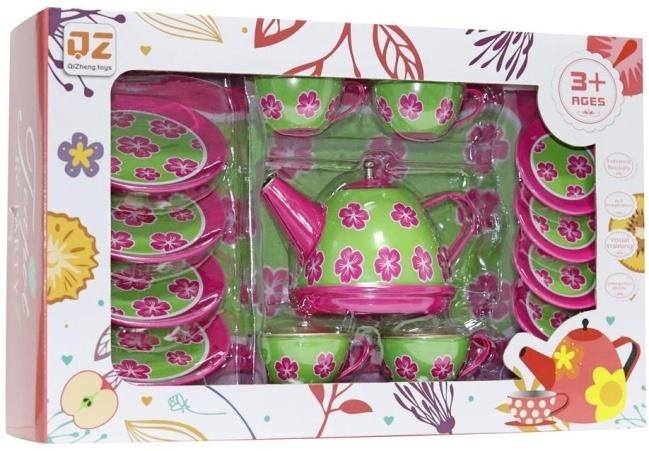 Ten uroczy metalowy zestaw do herbaty od Qizheng Toys to doskonała propozycja dla małych miłośników przyjęć i kulinarnych zabaw. Żywe kolory - soczysta zieleń i intensywny róż - w połączeniu z motywem różowych kwiatów sprawiają, że zestaw prezentuje się niezwykle atrakcyjnie. Komplet zawiera wszystkie niezbędne elementy do zorganizowania przyjęcia: metalowy czajniczek z pokrywką, filiżanki i pasujące do nich talerzyki. Zabawa tym zestawem to świetny sposób na rozwijanie wyobraźni, kreatywności i umiejętności społecznych. Dzieci mogą zapraszać swoich pluszowych przyjaciół, lalki lub rówieśników, ucząc się jednocześnie zasad gościnności i odgrywania ról. Trwałe, metalowe wykonanie zapewnia długą żywotność i odporność na zniszczenia podczas intensywnej zabawy. Produkt jest bezpieczny i przeznaczony dla dzieci od trzeciego roku życia. To idealny prezent, który zachęci do wspólnej zabawy i spędzenia czasu na kreatywnym udawaniu.