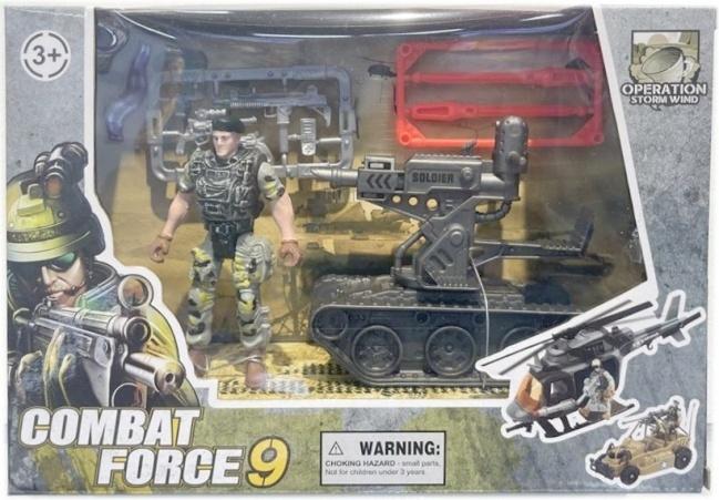 Wejdź do świata intensywnej akcji z zestawem Combat Force 9 - Operacja Storm Wind! Ten rozbudowany zestaw przeniesie Cię w sam środek militarnej operacji. Znajdziesz tu wszystko, czego potrzebujesz, aby planować strategiczne misje i toczyć porywające bitwy. Zostań dowódcą elitarnej jednostki i poprowadź swoje siły do zwycięstwa! Zawartość zestawu: Figurka Żołnierza: Figurka żołnierza z ruchomymi kończynami, dzięki czemu można ustawiać ją w różnych dynamicznych pozach. Figurka wyposażona jest w szczegółowy mundur bojowy i taktyczny ekwipunek, co dodaje autentyczności zabawie. Pojazd Opancerzony z Działem: Imponujący pojazd gąsienicowy z obrotowym działem. Działo można ustawiać pod różnym kątem, co pozwala na precyzyjne celowanie. Pojazd posiada detale takie jak opancerzenie i realistyczne koła gąsienicowe, co zwiększa atrakcyjność wizualną. Dodatkowe Wyposażenie: Zestaw zawiera dodatkowe elementy wyposażenia, takie jak różnego rodzaju bronie (karabiny, pistolety), akcesoria taktyczne, które urozmaicają zabawę i pozwalają na tworzenie różnorodnych scenariuszy bojowych. Elementy te można umieścić w rękach figurki lub na pojeździe, zwiększając interaktywność. Elementy do Wyciśnięcia: Dodatkowe części na plastikowych wypraskach, które można samodzielnie wyciąć i zamontować, co dodatkowo angażuje i rozwija zdolności manualne dziecka. Dlaczego warto wybrać Combat Force 9 - Operacja Storm Wind? Rozwija Wyobraźnię: Zestaw zachęca do kreatywnej zabawy i wymyślania własnych scenariuszy akcji. Wieloelementowość: Bogata zawartość zestawu gwarantuje długie godziny fascynującej zabawy. Idealny dla Fanów Militariów: Realistyczne odwzorowanie pojazdów i figurek z pewnością przypadnie do gustu miłośnikom wojskowości. Bezpieczeństwo: Zabawka przeznaczona dla dzieci powyżej 3 lat i spełnia wszelkie normy bezpieczeństwa. Przygotuj się na niezapomniane przygody z Combat Force 9 - Operacja Storm Wind! Dodaj do koszyka już dziś!