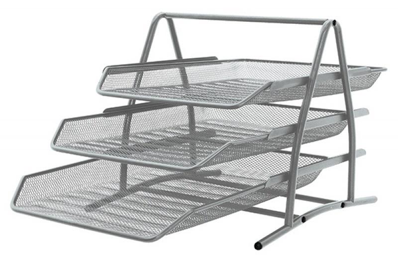 zestaw trzech wysuwanych szuflad wykonany z metalowej siateczki powlekanej lakierem