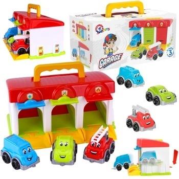 Pojazdy: w każdej części garażu znajduje się specjalistyczny pojazd, odpowiadający kolorowi oraz naklejce powyżej drzwi: minibus policyjny, jasnozielony samochód sportowy i czerwony wóz strażacki z ruchomą drabiną. Dzięki nim dzieci mogą odgrywać różne rolę i symulować różne sytuacje.