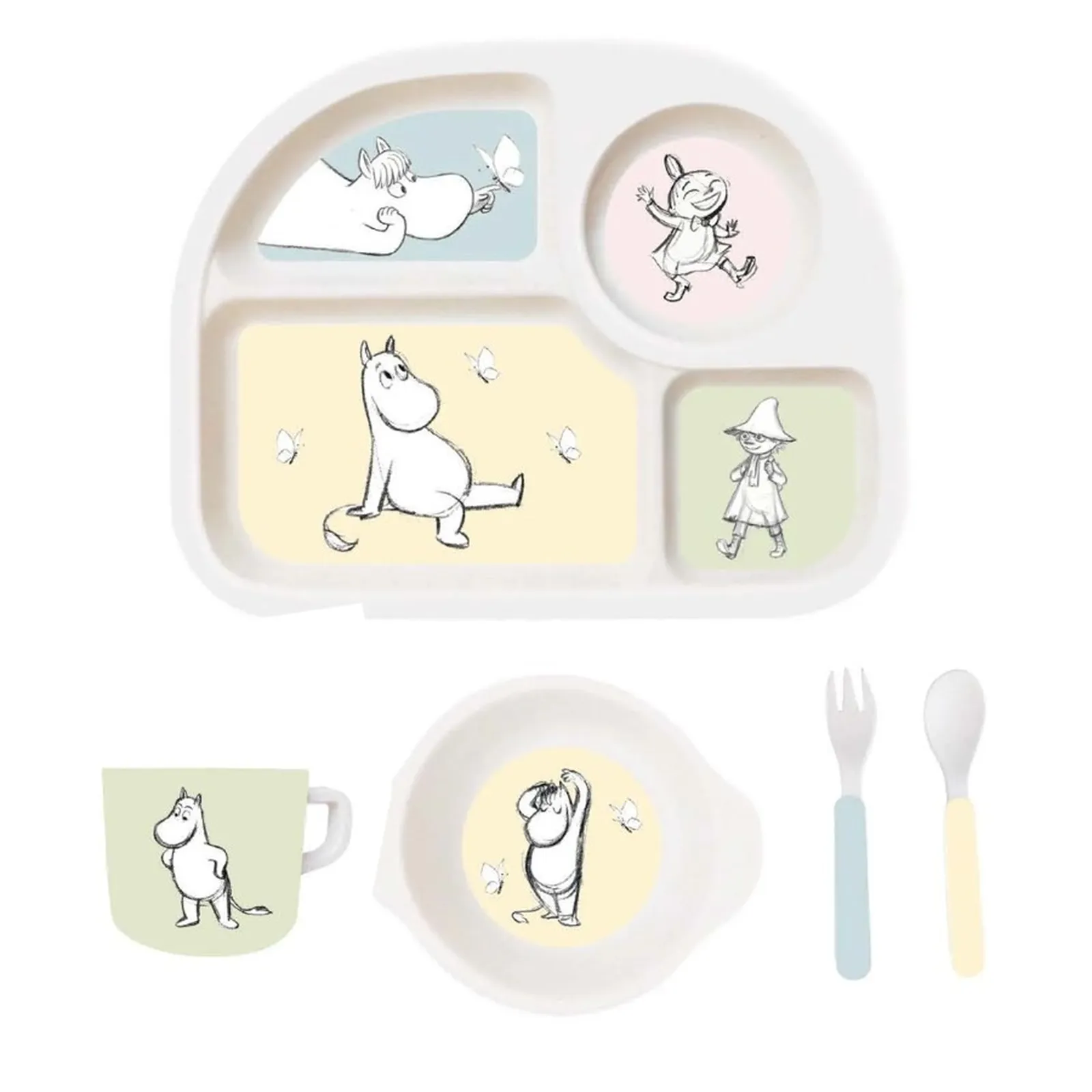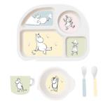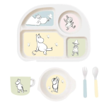 Zestaw Naczyń Dziecięcych z Melaminy, 5 el., Muminki Uroczy zestaw obiadowy z melaminy z wizerunkami wesołych Muminków sprawi, że każdy posiłek będzie dużo przyjemniejszy dla dzieci. Zestaw składa się z 4-komorowego talerzyka, miski, kubka oraz łyżeczki i widelca. Ten zestaw do jedzenia to idealny początek, gdy maluch musi zacząć samodzielnie jeść. Zestaw wykonany jest z żywicy melaminowej (bez BPA), która jest zarówno praktyczna, trwała, jak i absolutnie niezbędna do codziennego użytku. Dzieciom spodoba się posiadanie własnego zestawu do jedzenia ozdobionego uroczymi zwierzątkami. Doskonały pomysł na prezent na chrzciny, imieniny, urodziny. Szczegółowe informacje o produkcie: W zestawie: 4 - komorowy talerz, miseczka, kubek, łyżeczka i widelec. Nie zawiera BPA. Naczynia z melaminy przede wszystkim są ekologiczne, odporne na uszkodzenia, nie tłuką się, są wytrzymałe na uderzenia. Przeszły wszystkie rygorystyczne badania związane z dopuszczeniem ich do użytku dla dzieci. Są bez BPA, bez ftalanów, wyprodukowane zgodnie z obowiązującymi, europejskimi normami bezpieczeństwa. Można myć w zmywarce. Kategoria wiekowa: 1+. Wymiary opakowania: 30 cm x 25 cm x 5 cm. Uwaga: Umyć przed pierwszym użyciem, nie używać w kuchence mikrofalowej. Uwaga: Bambusowe produkty melaminowe można stosować do ciepłych posiłków (do 70 stopni Celsjusza). Produkty Barbo Toys są projektowane w Danii, ze szczególną dbałością o zrównoważony rozwój i wysokiej jakości materiały. Zabawki są wytwarzane zgodnie z filozofią "nauka przez zabawę", aktywnie wspierają i stymulują zarówno wyobraźnię jak i edukację dziecka, przy tym charakteryzują się doskonałym skandynawskim wzornictwem.