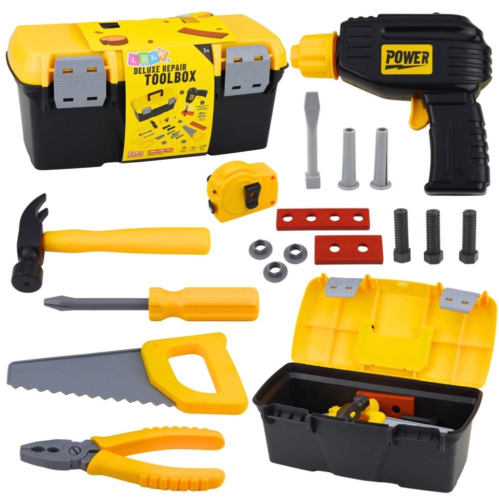 Zestaw zawiera 23 elementy, dzięki czemu dziecko może wcielić się w rolę prawdziwego fachowca. W komplecie znajduje się między innymi wkrętarka na baterie, młotek, piła, śrubokręt, szczypce, śruby oraz dodatkowe akcesoria. Ruchome elementy oraz możliwość skręcania i rozkręcania części pozwalają rozwijać precyzję ruchów, koordynację ręka oko oraz logiczne myślenie.