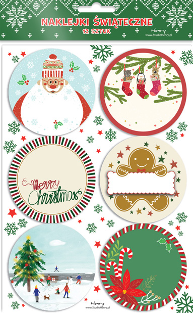 Opakowanie Zestaw naklejek na prezenty Mikołaj z brodą