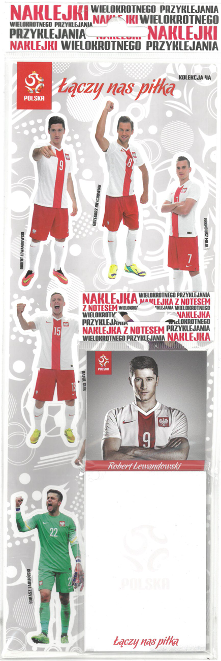 Średni Zestaw Naklejek z piłkarzami PZPN 1/2 A4 + notes Lewandowski(razem: 8 różnych naklejek + notes).
