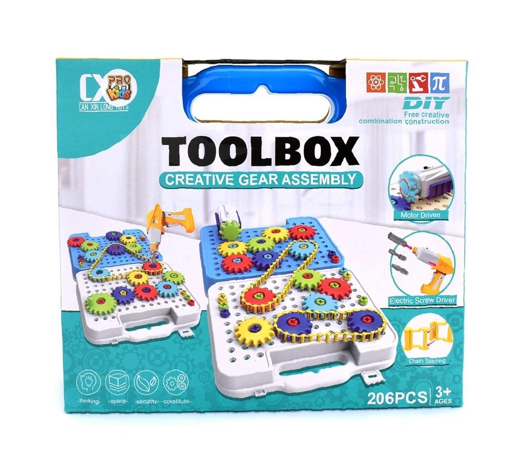 Narzędzia w walizce to zabawka dla małego inżyniera. Zadaniem dziecka jest ułożenie przekładni w taki sposób, aby stworzyć system kół zębatych napędzanych jednym elementem. Dzięki temu dziecko uczy się prostych zasad mechaniki i rozwija zdolność logicznego myślenia.