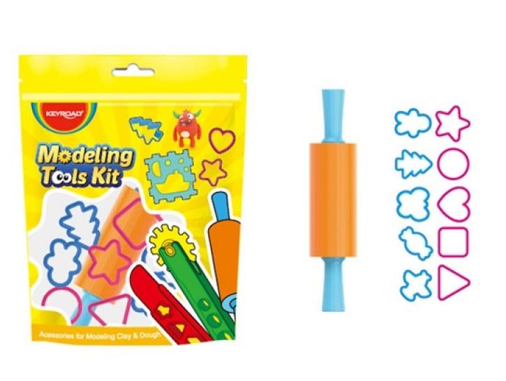 Opakowanie Zestaw narzędzi do ciastoliny KEYROAD, wałek, 10 form, mix kolorów