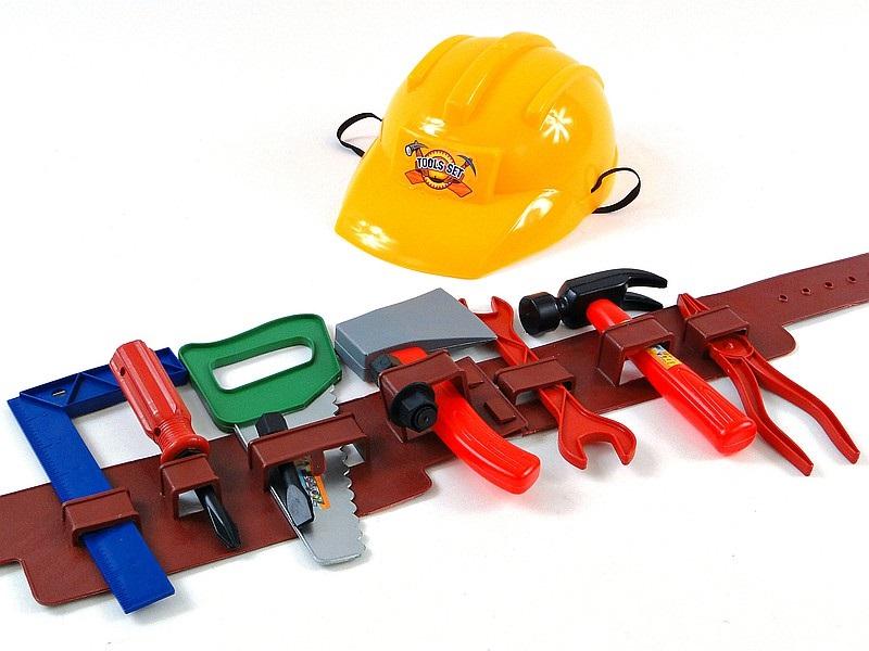 Zestaw narzędzi z kaskiem i pasem, w siatce; 63x18cm, siatka