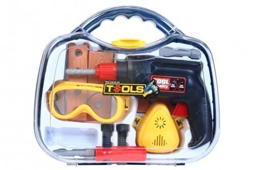 Zestaw plastikowych narzędzi dla małego majsterkowicza.
