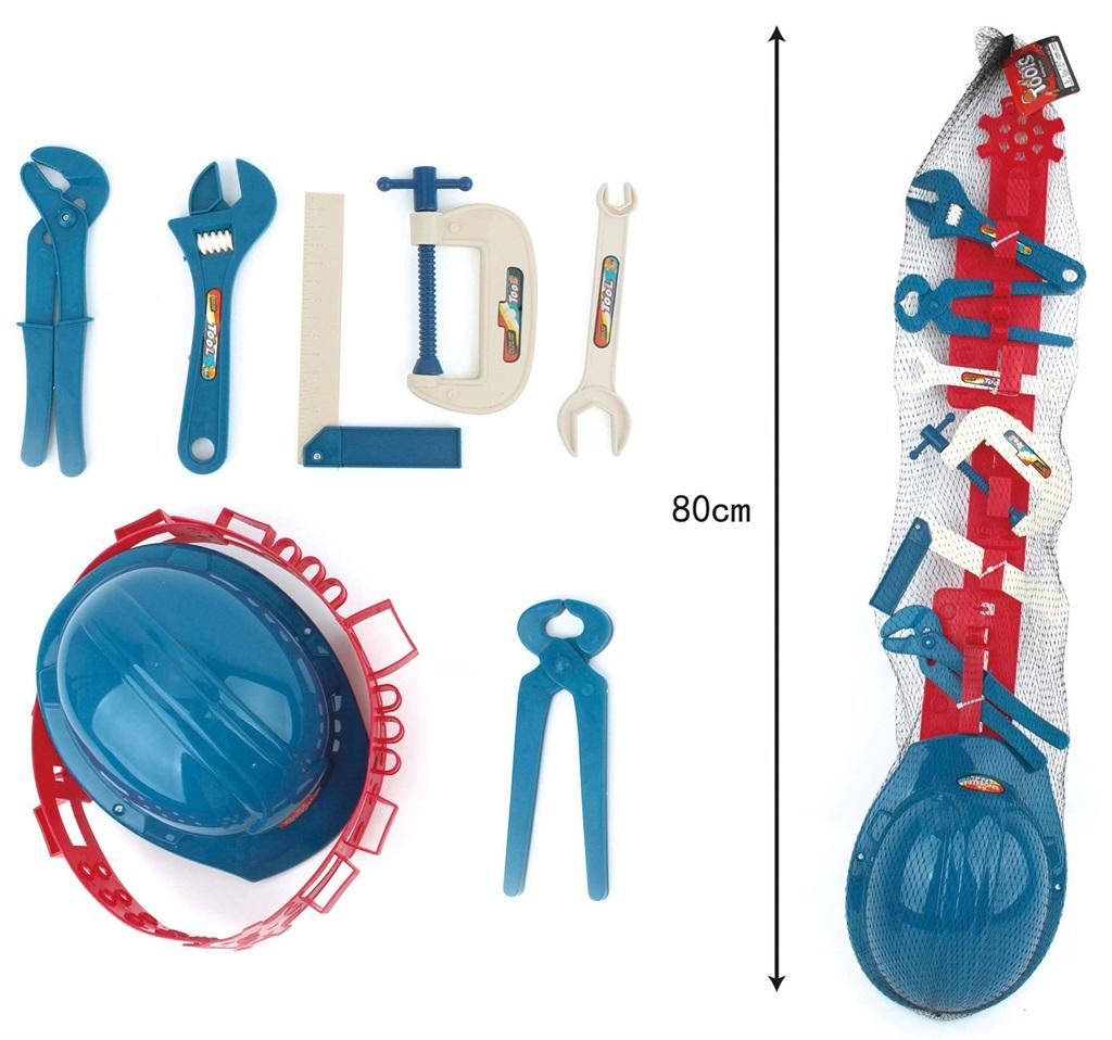 Zestaw narzędzi z pasem i kaskiem - 8 elementów.