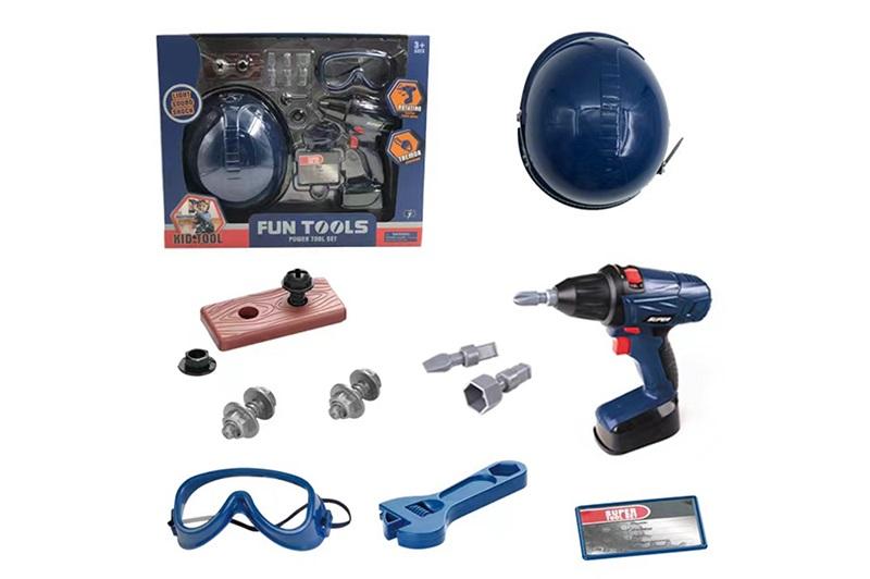 W zestawie: wkrętarka, deseczka, 3 śrubki, 3 końcówki do wkrętarki, kask, okulary ochronne, klucz francuski, identyfikator, funkcje: 2 tryby obrotów wkrętarki wkręcanie i wykręcanie, regulacja prędkości wkrętarki, wym. Opk: 40x 32,5 x 9,5 cm., baterie: 2 x AA brak w zestawie, 3+