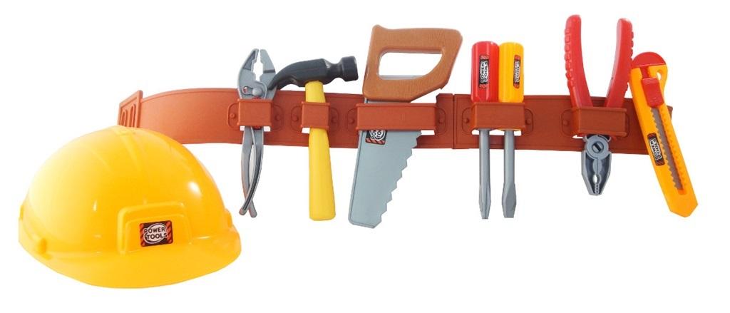 Zestaw narzędziowy dla małego majsterkowicza składający się z kolorowych akcesoriów: kluczy, śrubokrętów, nożyka tapeciarskiego piły, młotka oraz kasku. Zestaw idealnie nadaje się do zabawy z dzieckiem w naśladowanie dorosłych, pozwala poznać podstawowe nazewnictwo związane z domowym majsterkowaniem.