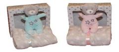 Zestaw New Baby z grzechotką, 2 kolory. Kocyk o wymiarach 75x100 cm.