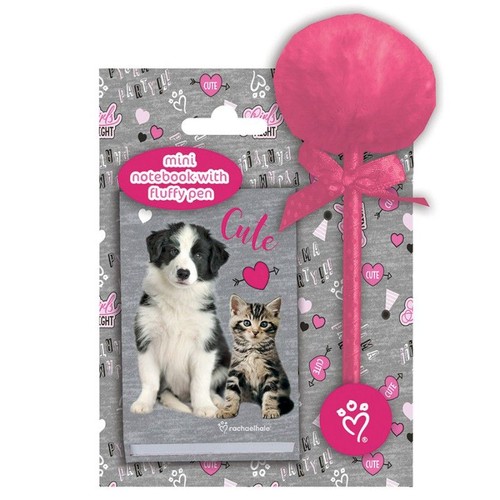 Zestaw Rachael Hale. Notesik w twardej oprawie o wymiarach 7,5x11 cm, papier 70 g. Posiada 80 kartek z zadrukiem wewnętrznym oraz długopis z pomponem. Pakowany jest na blistrze.