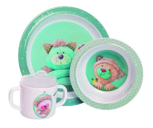 Komplet do jedzenia z bezpiecznej melaniny marki Moulin Roty . Idealny do pierwszych prób samodzielnego jedzenia. Jasne kolory i ładne grafika z kotkami z rodziny LES PACHATS , przyciągają uwagę dziecka. Komplet zawiera: 1 płaski talerz, 1 miskę, kubeczek Kategoria wiekowa: 6 m + Produkt zgodny z normą EN14372. Instrukcja w środku. Szczegóły i kolory mogą się różnić. Uwaga! Zdjąć całe opakowanie przed użyciem.