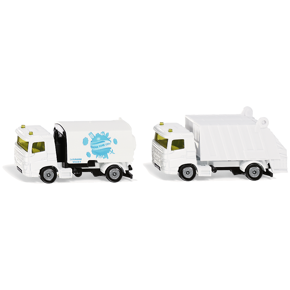 Nasze miasto musi być czyste i uporządkowane. O to dba zestaw Siku, składający się z zamiatarki i śmieciarki Faun Umwelttechnik.