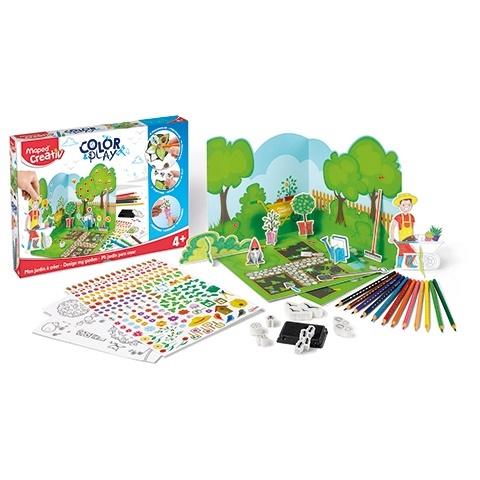 Wybierz się na zewnątrz i stwórz własny ogródek. Z zestawem od Maped Creativ dzieci mogą przygotować całą zabawę za pomocą kartonowych wzorów, gotowych do pokolorowania i ułożenia. Duża plansza z ogródkiem i postaciami do udekorowania dają możliwość zabawy na kilka godzin, a dodatkowo dołączony pakiet stempli gwarantuje urozmaicenie spotkania. W opakowaniu znajdują się również kredki w 12 kolorach.