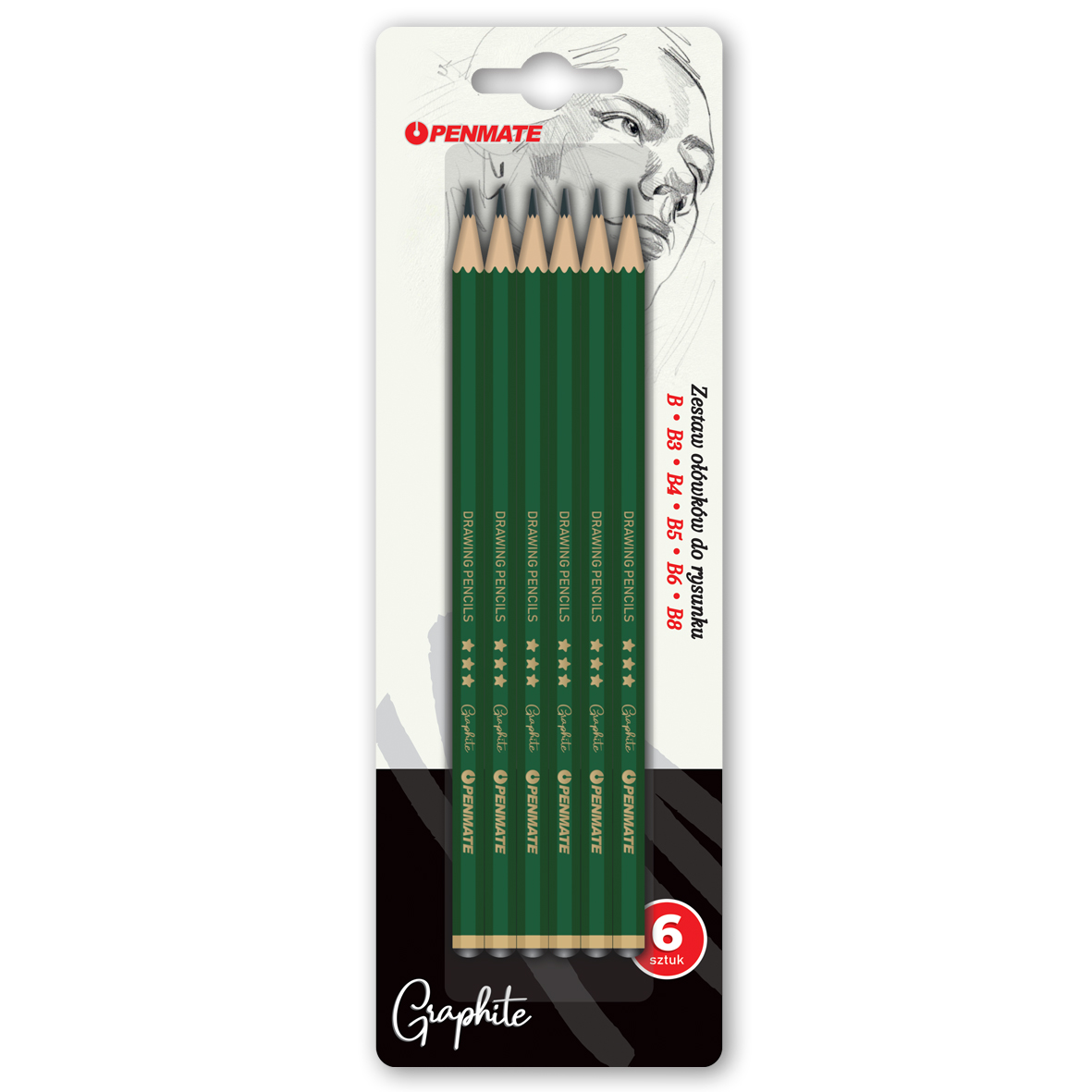 Zestaw ołówków miękkich PENMATE do rysunku na blistrze 6szt.