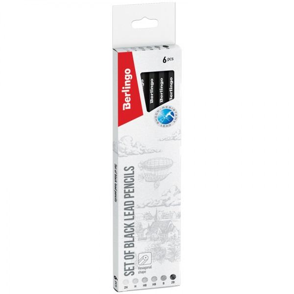 Zestaw 6 heksagonalnych drewnianych ołówków o róznych twardościach. Nadaje się do szkicowania i rysowania. Średnica grafitu wynosi 2mm, twardość 2H, H, 2 x HB, B i 2B.