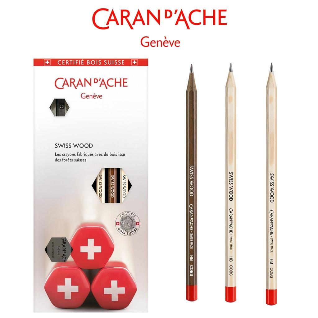 Zestaw ołówków Swiss Wood 3szt+gumka+temperówka