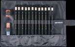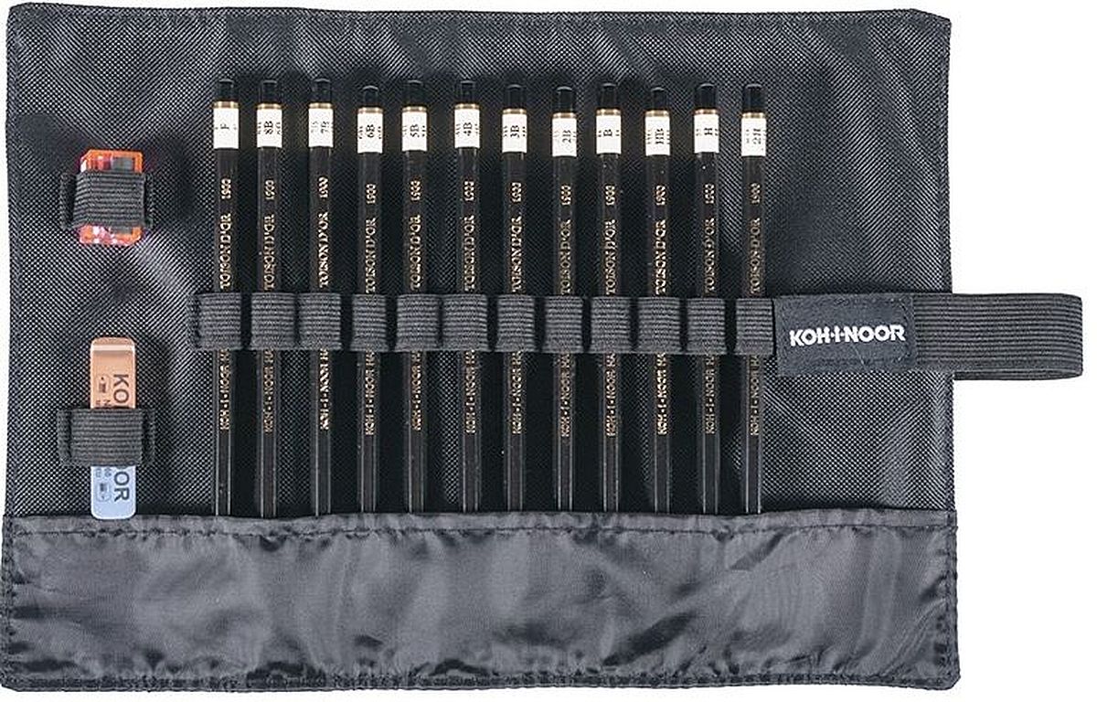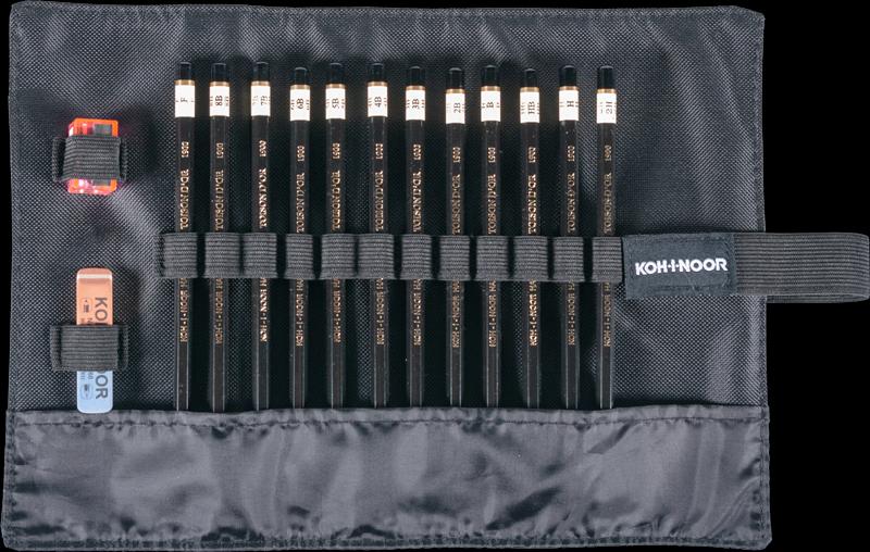 Komplet ołówków grafitowych serii 1900 w czarnym zwijanym etui. W skład zestawu wchodzi 12 sztuk ołówków od 8B do 2H, temperówka plastikowa oraz gumka.