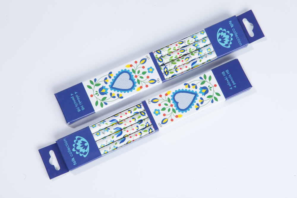 Opakowanie ZESTAW OŁÓWKÓW Z GUMKAMI FOLK KASZUBY 4 SZTUKI