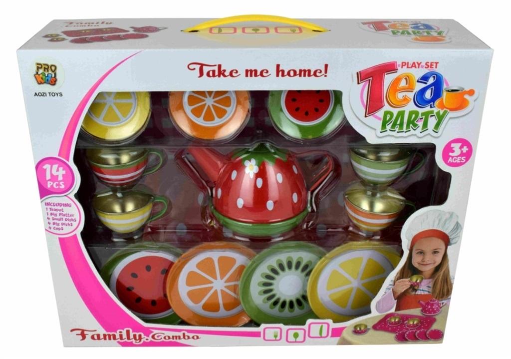 Zestaw do herbaty z pięknym czajnikiem i zastawą w motywach owocowych. Każdy element jest w specjalnej grafice odpowiadającym owocom. Naszym gościom owocową herbatkę podajemy na metalowej tacy dołączonej do zestawu.