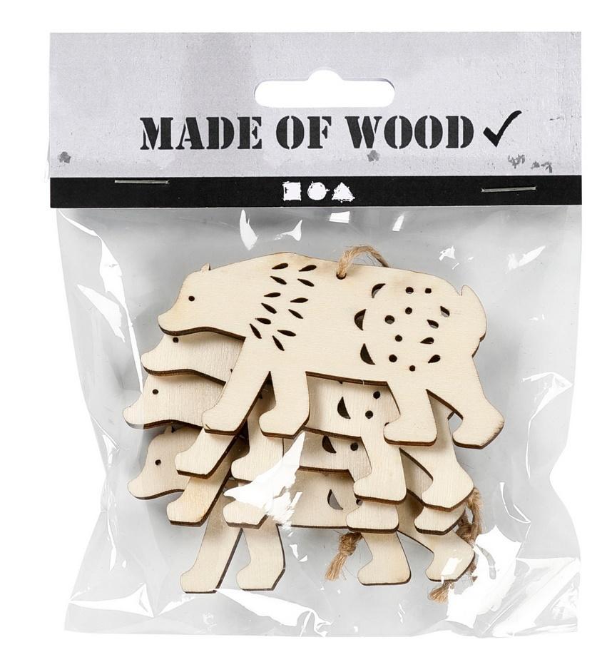 -zawieszki wykonane ze sklejki z ciemnymi krawędziami -wyposażone w sznurek do zawieszenia -rozmiar 4,5 x 7,5 cm, grubość 0,5 cm -4 szt.