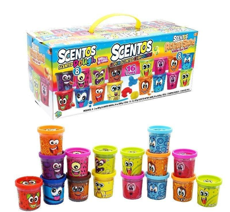 - zestaw zawiera: 8 kubeczków z zapachowym piaskiem kinetycznym w różnych kolorach, 8 kubeczków z zapachową ciastoliną w różnych kolorach, 3 foremki i 1 narzędzie do formowania;