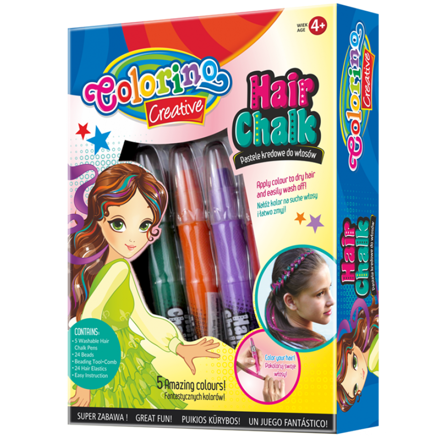 Bajecznie kolorowe włosy w kilka sekund! Fantastyczna zabawa dla kreatywnych dziewczynek lubiących wyjątkowe stylizacje.