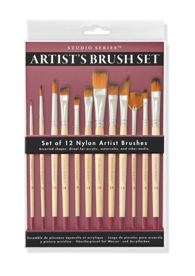 Zestaw 12 pędzli artystycznych marki Peter Pauper Press, wysokiej jakości, doskonałych do malowania farbami wodnymi i akrylowymi. Miękie nylonowe włosie zachowuje swój kształt w czasie malowania i po czyszczeniu pędzli. Szeroki wachlarz koncówek umożliwia stosowanie różnych technik malarskich.