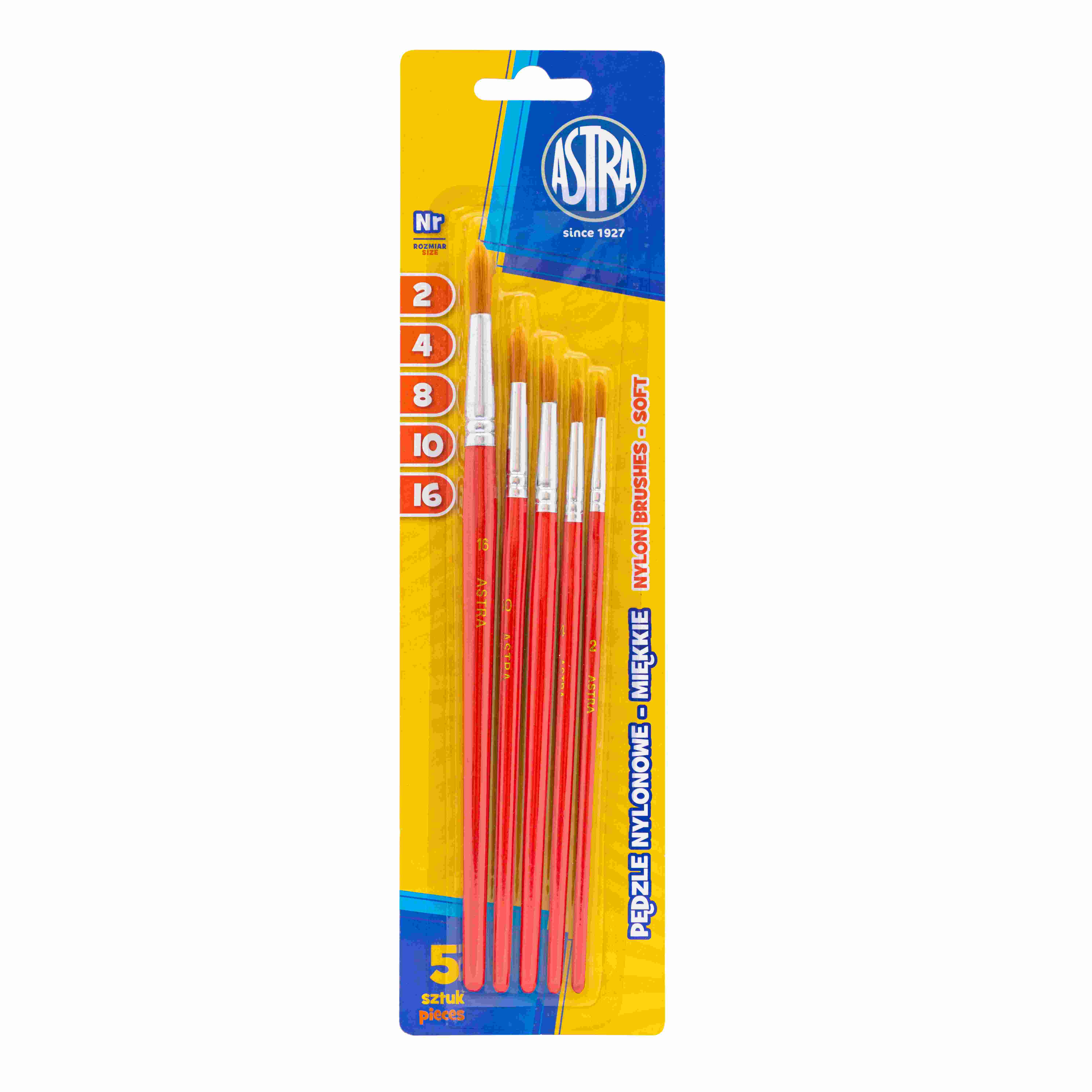 Opakowanie Zestaw pędzli nylon Astra 5 szt. rozmiary 2/4/8/10/16