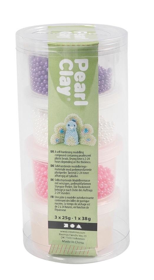 Asortyment samoutwardzalnych mieszanek modelujących zawierających perły z tworzywa sztucznego -idealne do przykrywania i modelowania wokół różnych przedmiotów -zestaw 3 kolorów wraz z żelem do modelowania -instrukcja dołączona do opakowania -perły (3x25 g), żel (38 g) Kolory w zestawie: fiolet, różowy, biały.
