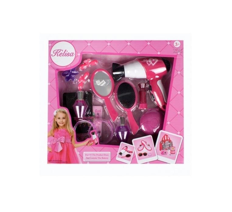 Każda mała dama chce pięknie wyglądać. W zestawie MEGA CREATIVE znajdują się niezbędne do tego produkty, które przypadną do gustu nawet najbardziej wymagającym dziewczynkom W zestawie znajdują się suszarka, lakiery do paznokcie, szczotka, lusterko, szminka, spinki, bransoletki oraz lusterko kompaktowe. Poszczeglne elementy posiadają efekty dźwiękowe oraz świetlne. Zestaw wykonany z plastiku. Przeznaczony dla dzieci w wieku 3l. Wymaga zasilania 1 baterią AA 1,5V - nie załączoną do zestawu.