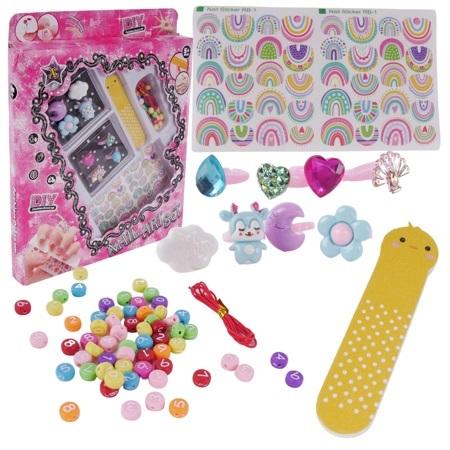 Ten zestaw urody to wspaniała i kreatywna rozrywka dla małej dziewczynki. Mała księżniczka będzie mogła samodzielnie przykleić naklejki na paznokcie lub twarz, ozdobić dłonie różnymi pierścionkami oraz wystylizować paznokcie za pomocą dołączonego delikatnego pilniczka.
