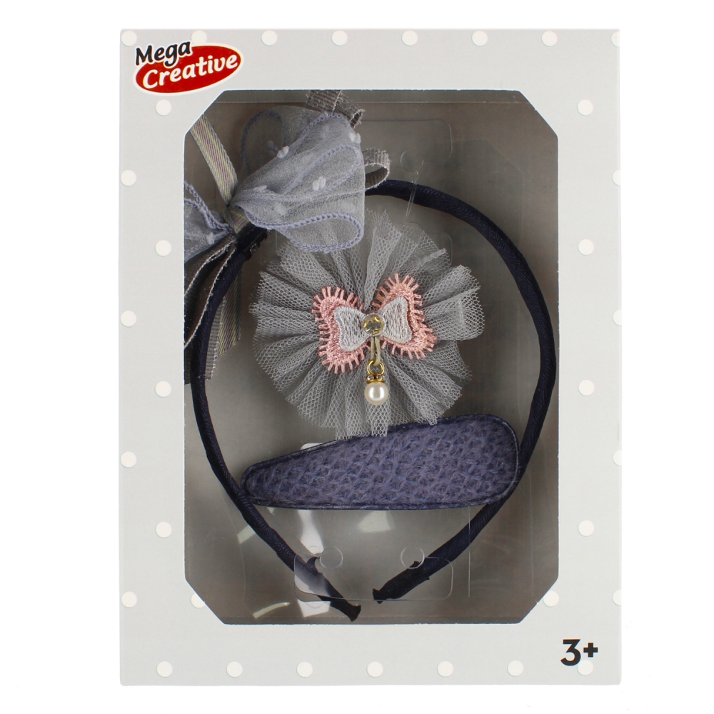Zalety produktu: staranne wykonanie, każda dziewczynka może poczuć się jak prawdziwa księżniczka. Zestaw ozdób do włosów to niezbędne akcesoria każdej młodej damy wchodzącej coraz większymi krokami w życie. Akcesoria MEGA CREATIVE wydobędą z niej prawdziwą pięknisie! Zawartość zestawu: opaska do włosów, 2x spinka do włosów. Zestaw w kolorze grafitowym. Całość wykonana z plastiku i materiału Wymiary/waga/baterie: wymiary opakowania (dł. x wys. x gł.)[cm]: 15x20x3, waga produktu z opakowaniem [kg]: 0,07 kg, nie wymaga zasilania bateriami. Produkt przeznaczony dla dzieci w wieku: 3+. Pakowany w kartonik z okienkiem.