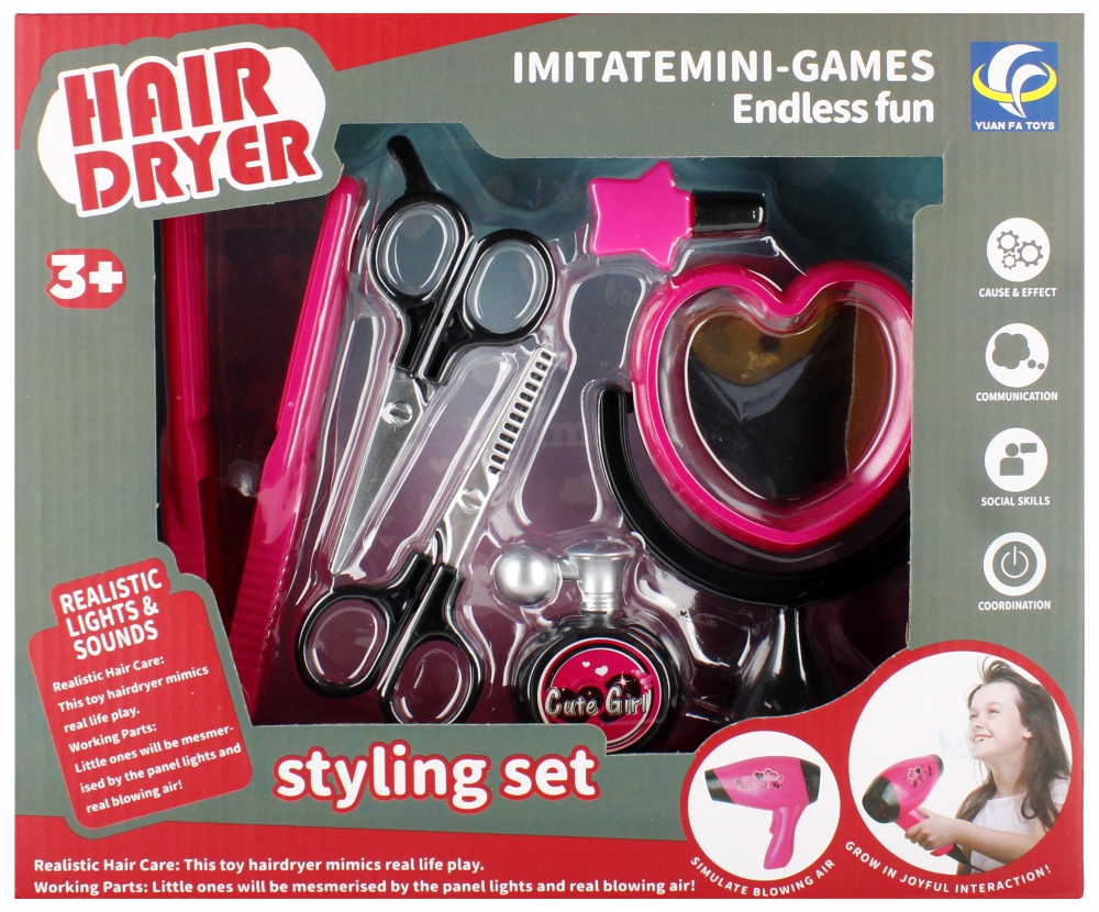 Zalety produktu rozwija kreatywność dziecka, pozwoli dziecku wczuć się w rolę prawdziwego fryzjera.