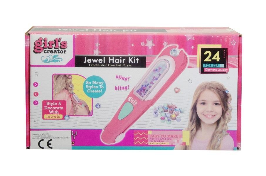 Zestaw piękności dla dziewczynki biżuteria do włosów. Stwórz unikatową stylizację. W zestawie znajduje się m.in. biżuteria do włosów 24 szt. i przyrząd do zamieszczania biżuterii we włosach. Produkt zapakowany w kartonowe opakowanie. Podane wymiary są wymiarami opakowania.