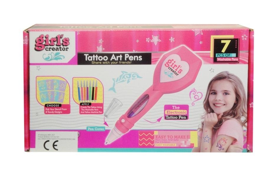 Zestaw piękności dla dziewczynki kolorowe tatuaże. Stwórz unikatową stylizację. W zestawie znajdują się m.in. pióro do tatuażu, zmywalne pisaki, 8 szablonów. Produkt działa na baterie typu AAA. Baterie nie są załączone do zabawki. Produkt zapakowany w kartonowe opakowanie. Podane wymiary są wymiarami opakowania.