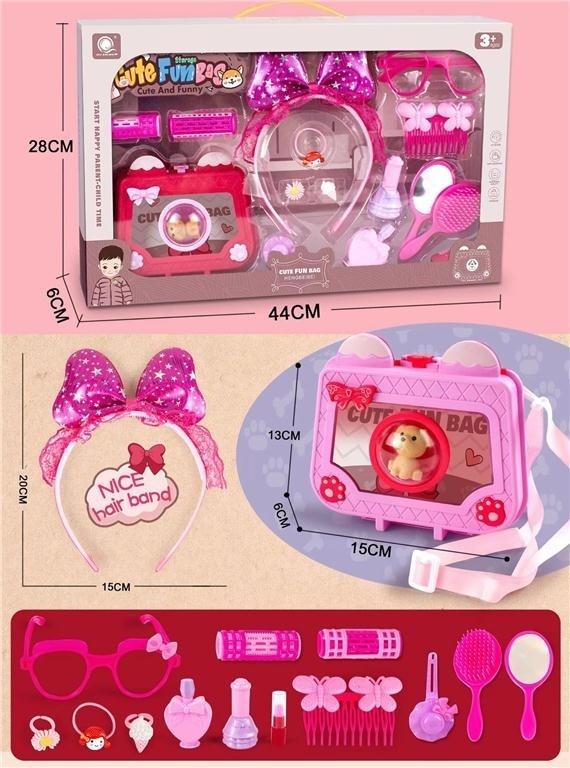 Odkryj niezwykły świat dziecięcej wyobraźni z bogatym zestawem akcesoriów Cute Fun Bag, który przeniesie każdą zabawę w nowy wymiar stylu i elegancji. Ten kompletny przybornik małej damy został zaprojektowany z myślą o rozwijaniu kreatywności oraz doskonaleniu umiejętności manualnych poprzez fascynującą zabawę w odgrywanie ról. Centralnym elementem zestawu jest wielofunkcyjna, różowa torebka na wygodnym pasku, wyróżniająca się przezroczystym okienkiem z figurką uroczego szczeniaka, która pilnuje wszystkich ukrytych wewnątrz skarbów.