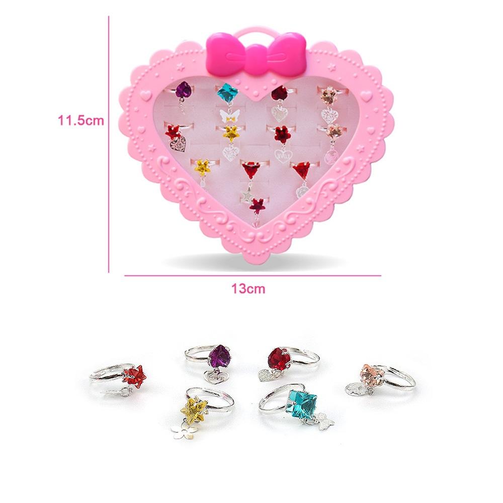Zestaw 12 pierścionków z przywieszką, umieszczonych w opakowaniu w kształcie serduszka. Wymiary serduszka - 33 x 2 x 11.5 cm.
