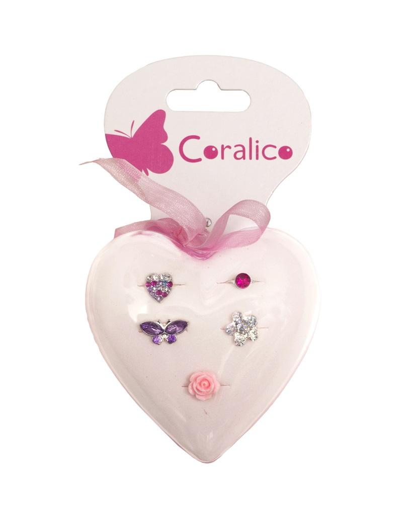 Zestaw 5 pierścionków w pudełku w kształcie serca