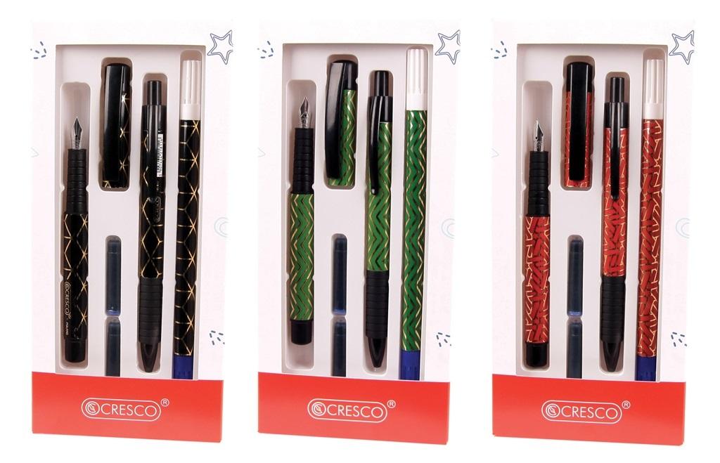 Zestaw piśmienniczy z serii COLLEGE zawierający pióro + długopis + wymazywacz z korektorem oraz 2 naboje. Całość zapakowane w estetyczne etui.