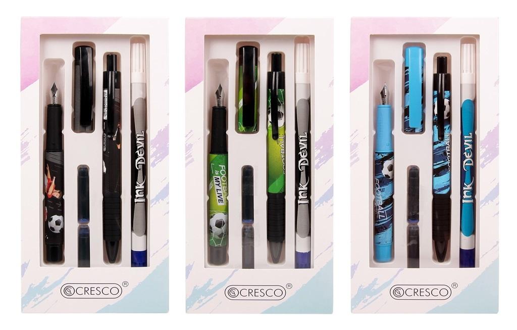 Zestaw piśmienniczy z serii COLLEGE zawierający pióro + długopis + wymazywacz z korektorem oraz 2 naboje. Całość zapakowane w estetyczne etui. Mix wzorów z motywem piłki.