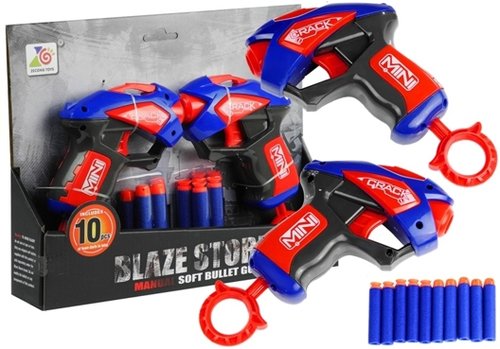 Zestaw pistoletów z wyrzutnią sprężynową na strzałki wraz z 10 piankowymi nabojami. Jeden pocisk przy jednym wystrzale. Idealny na wojenne zabawy chłopców. Pistolet lekki i poręczny. Świetna zabawa na świeżym powietrzu. Umieszczamy pocisk w pistolecie, naciągamy i strzelamy. Zestaw zawiera: -2 pistolety -Zestaw piankowych naboi (10 szt) Wymiary pistoletu: 16 cm x 12 cm x 3 cm